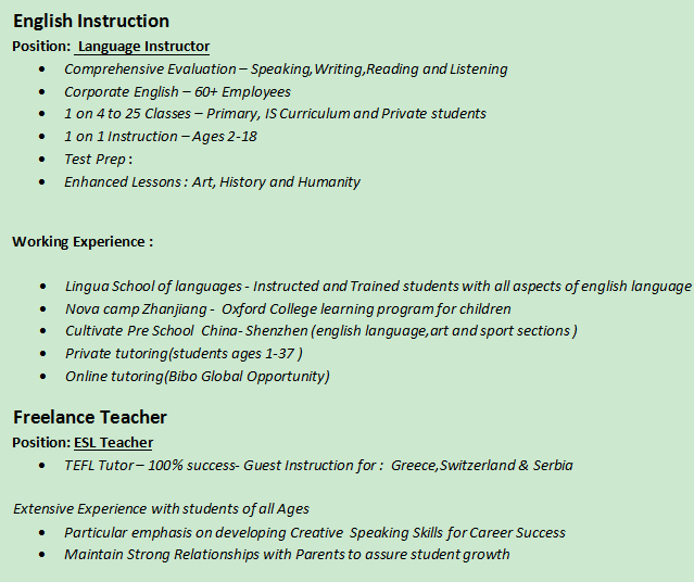 自我介紹,介紹3年中國教學經(jīng)驗,目前在找新的工作機會