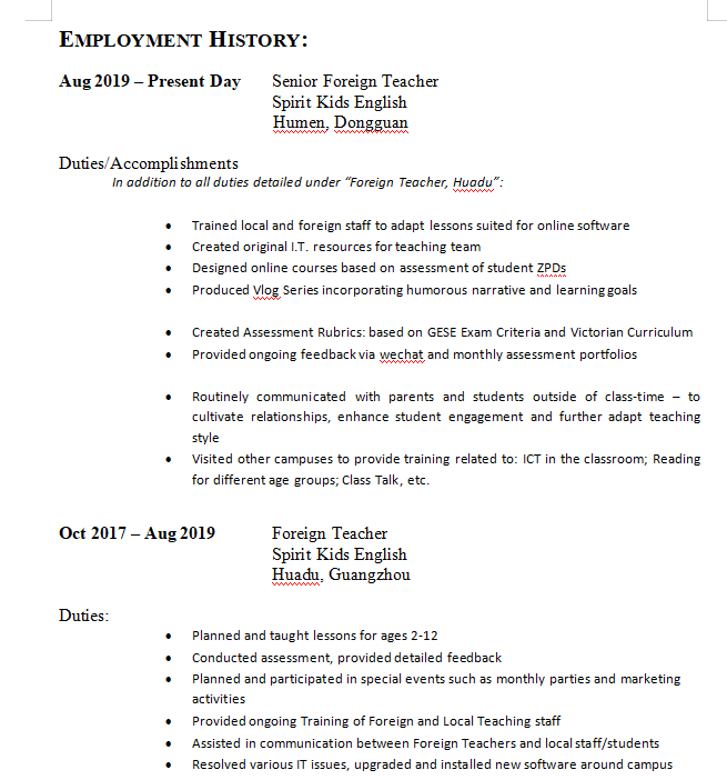 澳大利亞, 墨爾本大學(xué), 小學(xué)教育碩士,在東莞 工簽轉(zhuǎn)聘在1月, 求職距離廣州近的公立私立小學(xué)職位(妻子在廣州), 5年經(jīng)驗(yàn), ,薪資22-28K 可以協(xié)商 |