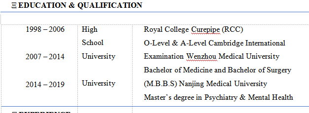國(guó)籍: 津巴布韋 求職意向: 教師