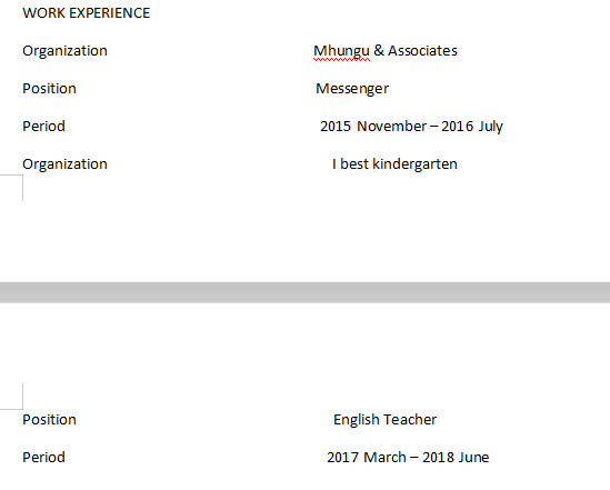 國(guó)籍: 津巴布韋 求職意向: 教師