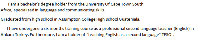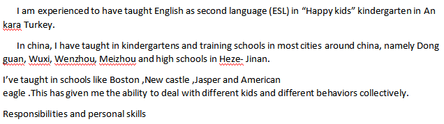 國籍: 津巴布韋 求職意向: 教師
