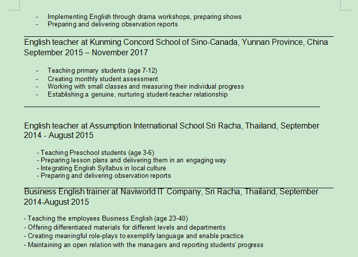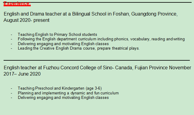 Iuliana Munteanu +羅馬尼亞 -理工學院電子和電信網(wǎng)絡學士)+羅馬尼亞+tefl+文教類工簽轉(zhuǎn)(2021.07.31)+求職深圳幼兒園+目前在佛山,明年2月到崗 |