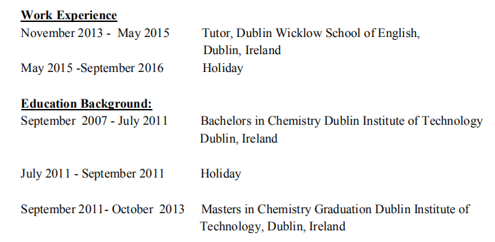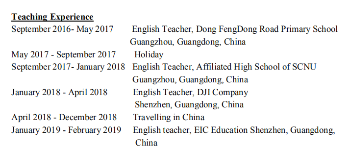 國籍: 津巴布韋 求職意向: 教師