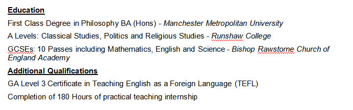 英國,在英國, 哲學學士學位(榮譽)-曼徹斯特城市大學 ,有1年經驗,tefl 求職上海2021.2-3月份工作,, 薪資 22K, 不限制學校類型, 提前預定。 |