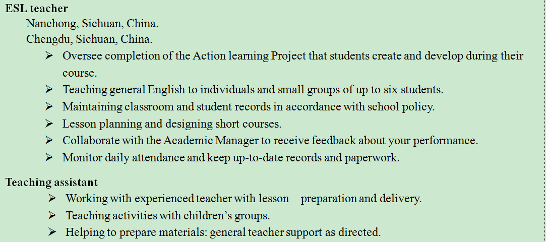國(guó)籍: 美國(guó) 求職意向: 教師