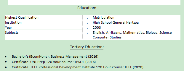 自我介紹,介紹國籍,中國教學(xué)經(jīng)驗(yàn),石家莊,廊坊等都有經(jīng)驗(yàn),目前在找下個(gè)學(xué)期的教學(xué)工作,傾向于小學(xué)和初中。---發(fā)音超級好,經(jīng)驗(yàn)豐富,富有激情