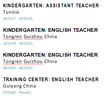國(guó)籍: 新加坡 求職意向: 教師