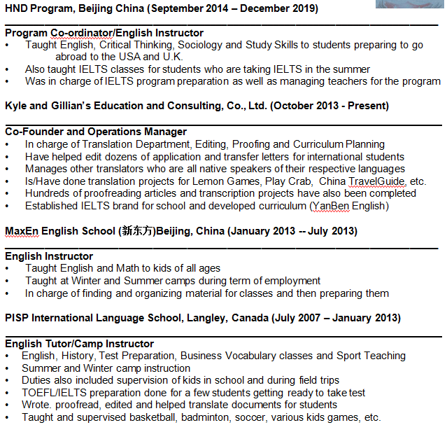 國籍: 美國 求職意向: 教師