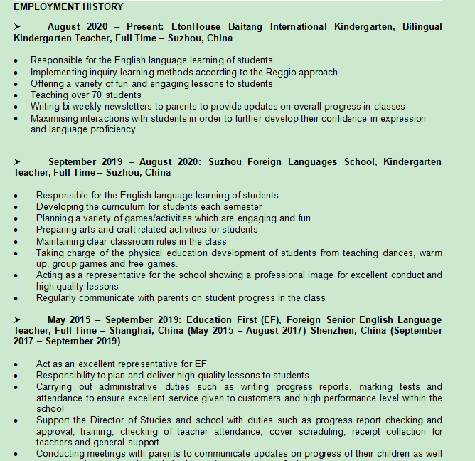 國(guó)籍: 澳大利亞 求職意向: 教師