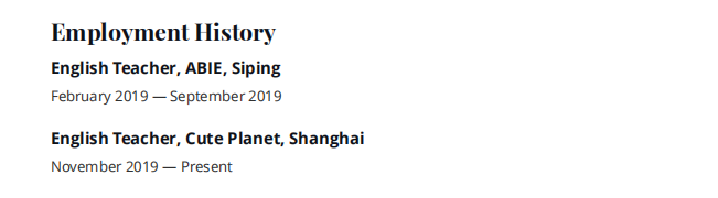 國(guó)籍: 澳大利亞 求職意向: 教師