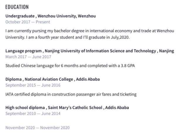 國(guó)籍: 摩洛哥 求職意向: 教師