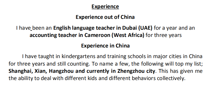 國(guó)籍: 摩洛哥 求職意向: 教師