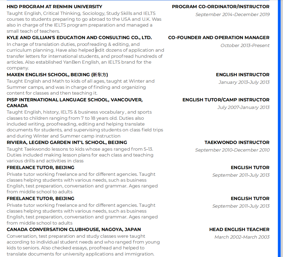 國(guó)籍: 澳大利亞 求職意向: 教師