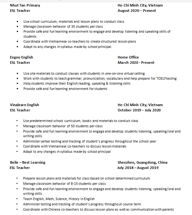 國(guó)籍: 孟加拉 求職意向: 教師