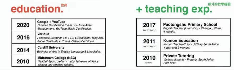 口音好, 形象佳, 教學(xué)經(jīng)驗(yàn)豐富, 有 tefl 證書 |