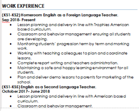 外教的工作經(jīng)歷