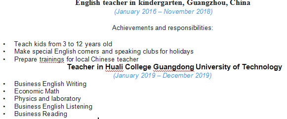 國(guó)籍: 摩洛哥 求職意向: 教師