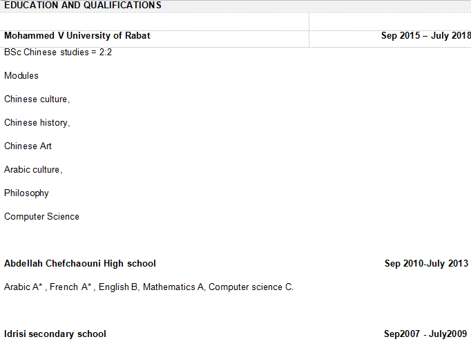 國籍: 摩洛哥 求職意向: 教師