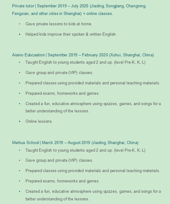 國籍: 其他 求職意向: 教師