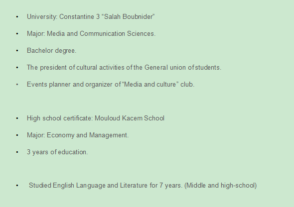 國籍: 摩洛哥 求職意向: 教師
