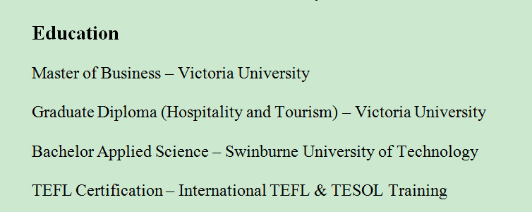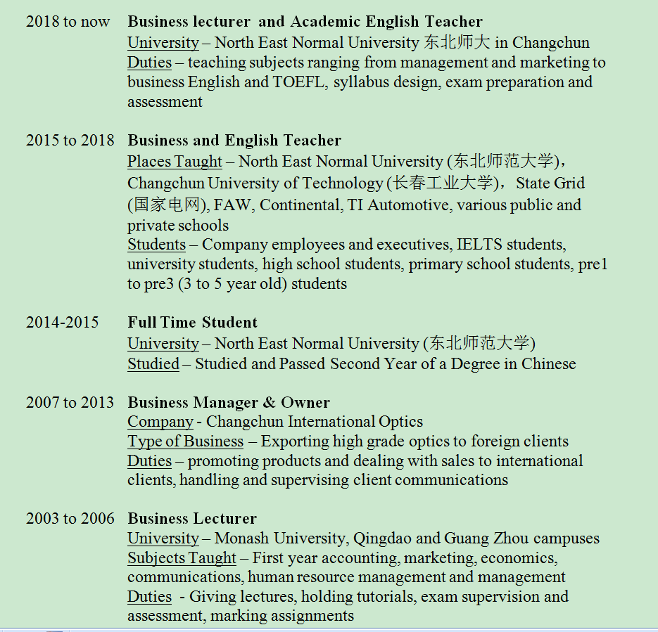國籍: 澳大利亞 求職意向: 教師