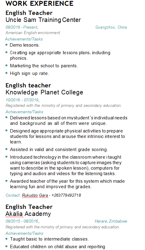 國(guó)籍: 摩洛哥 求職意向: 教師