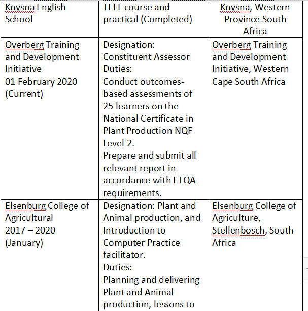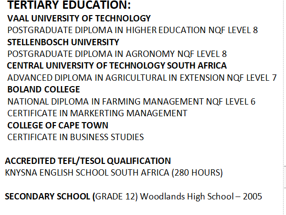 南非 在南非, 教育專業(yè) 碩士 tefl 經(jīng)驗(yàn), 求職年后職位 薪資協(xié)商。 |