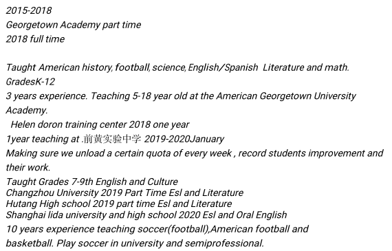 國(guó)籍: 澳大利亞 求職意向: 教師