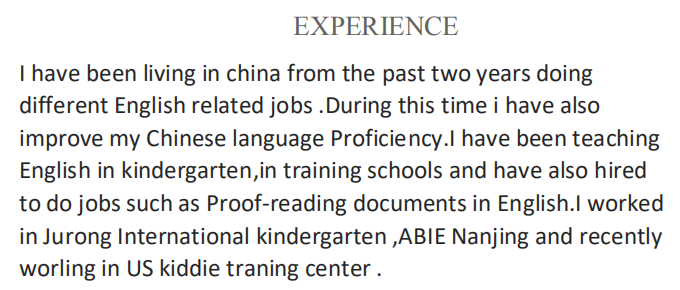 國籍: 其他 求職意向: 教師