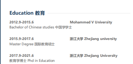 國(guó)籍: 摩洛哥 求職意向: 教師