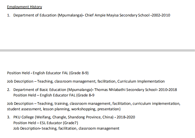 國籍: 其他 求職意向: 教師