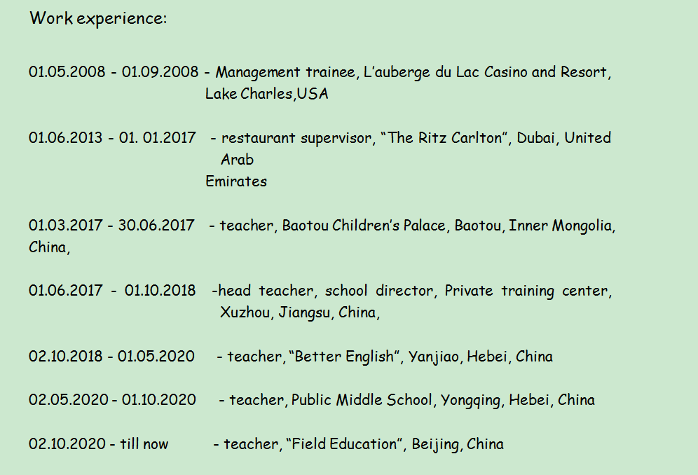 學歷: 本科 期望薪資: 8000-11000(Yuan/M)