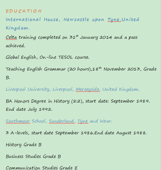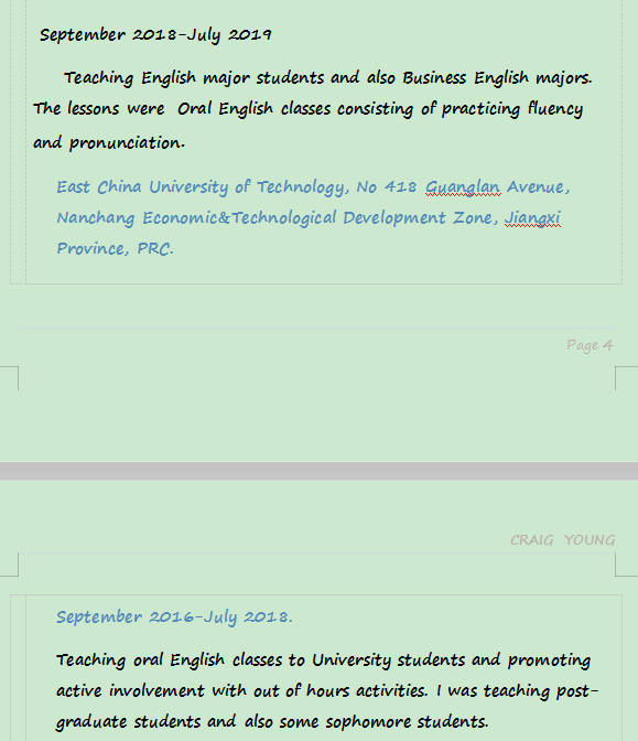 自我介紹,介紹國籍,英國倫敦,學位和學歷,tefl證書,7年中國教學經驗,大學,初高中,培訓等都有經驗。最擅長教口語,當然也能教寫作等-------純正英音,經驗豐富