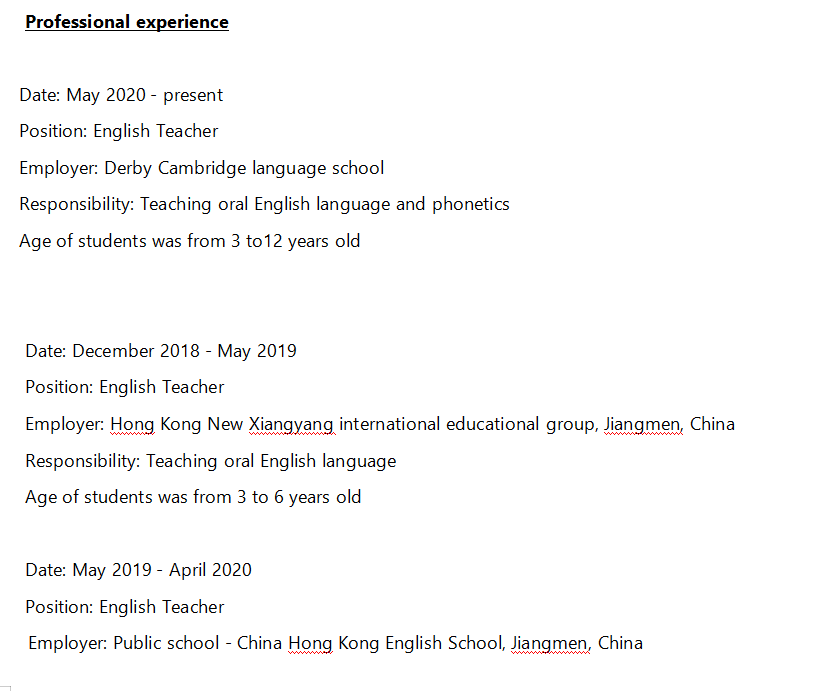 國籍: 其他 求職意向: 教師