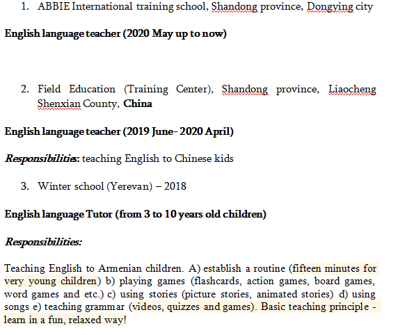 國(guó)籍: 孟加拉 求職意向: 教師