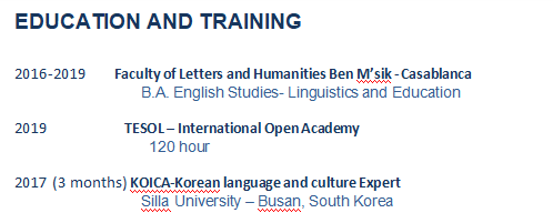 國(guó)籍: 摩洛哥 求職意向: 教師