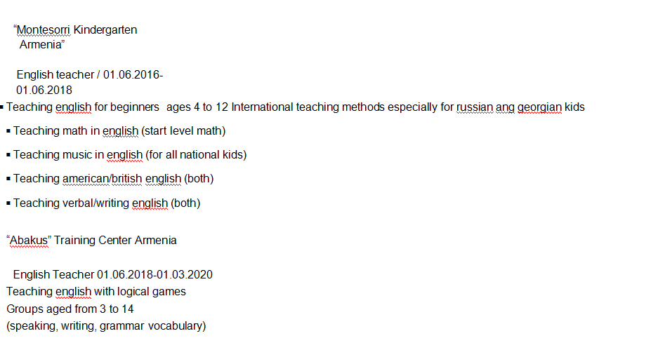 國籍: 其他 求職意向: 教師