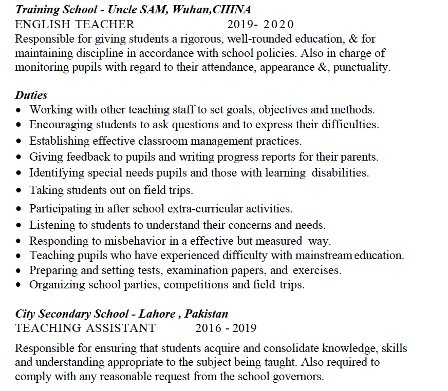 國(guó)籍: 摩洛哥 求職意向: 教師