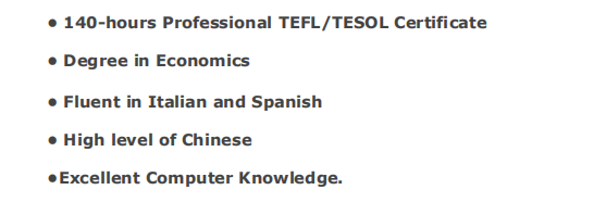 本科經(jīng)濟(jì)專業(yè),TEFL,5年以上經(jīng)驗(yàn),求職佛山學(xué)校,可以馬上工作 |