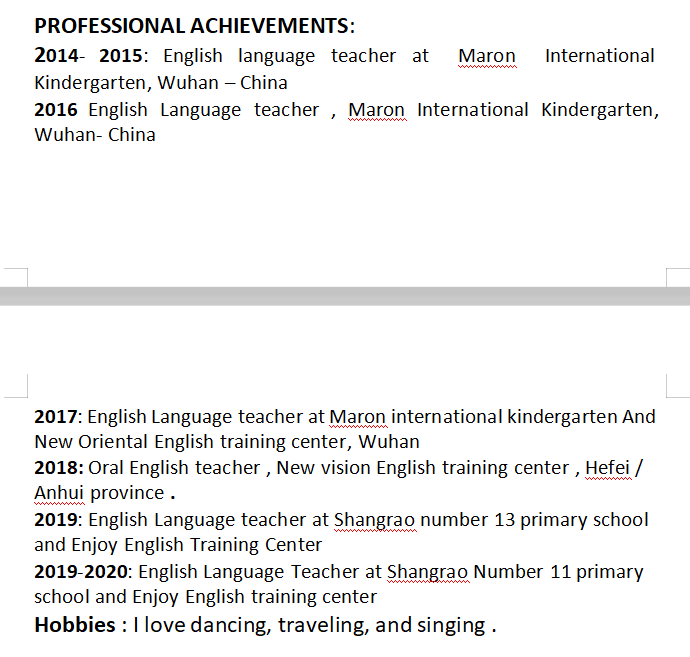 國(guó)籍: 孟加拉 求職意向: 教師