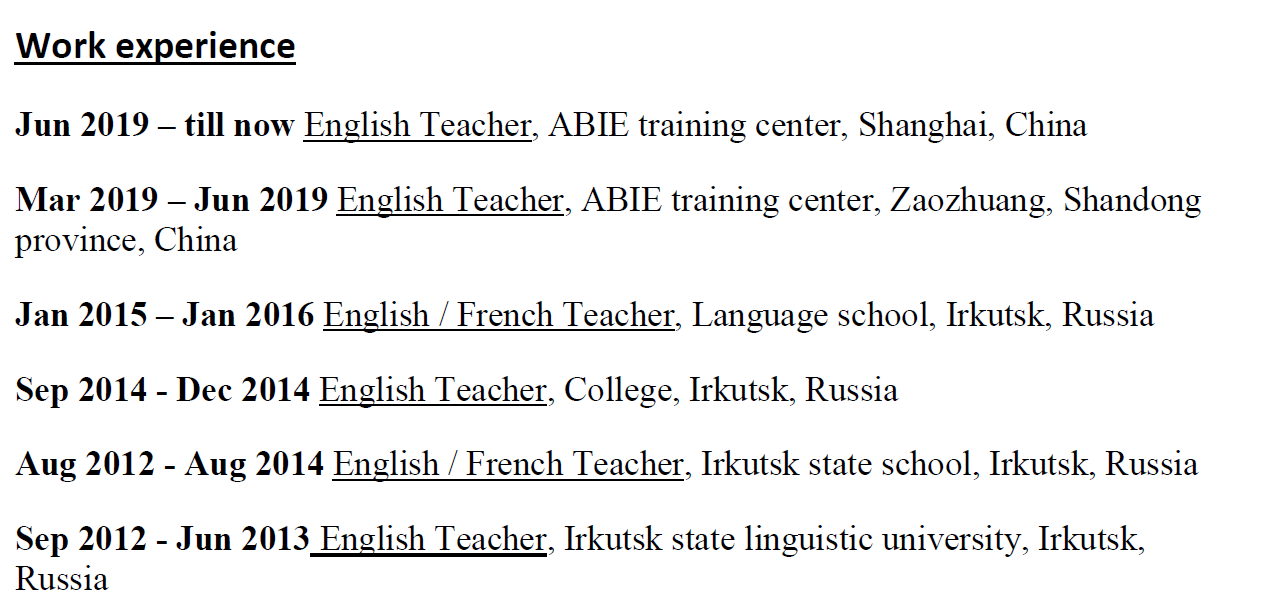 國(guó)籍: 澳大利亞 求職意向: 教師
