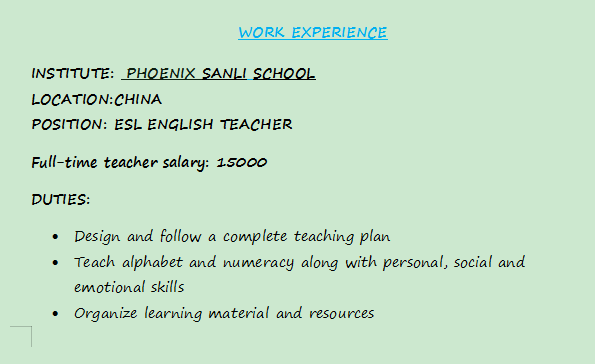 國(guó)籍: 澳大利亞 求職意向: 教師