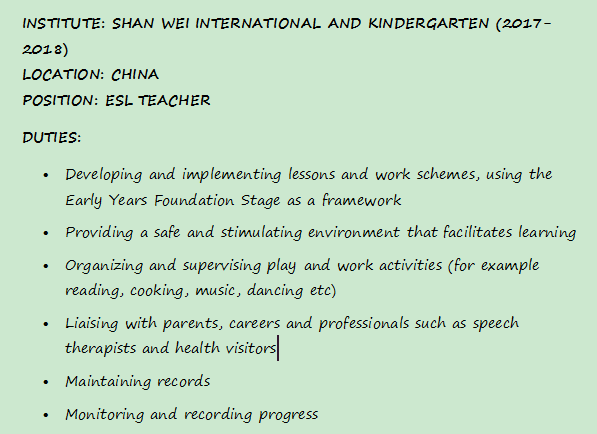 自我介紹,介紹年齡,2年中國(guó)教學(xué)經(jīng)驗(yàn),培訓(xùn)和幼兒園都有經(jīng)驗(yàn),喜歡孩子,熱愛(ài)教育