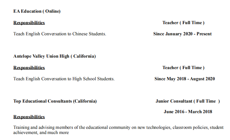 在美國,文學(xué)碩士,TESOL,經(jīng)驗5年左右,求職大學(xué)職位 |