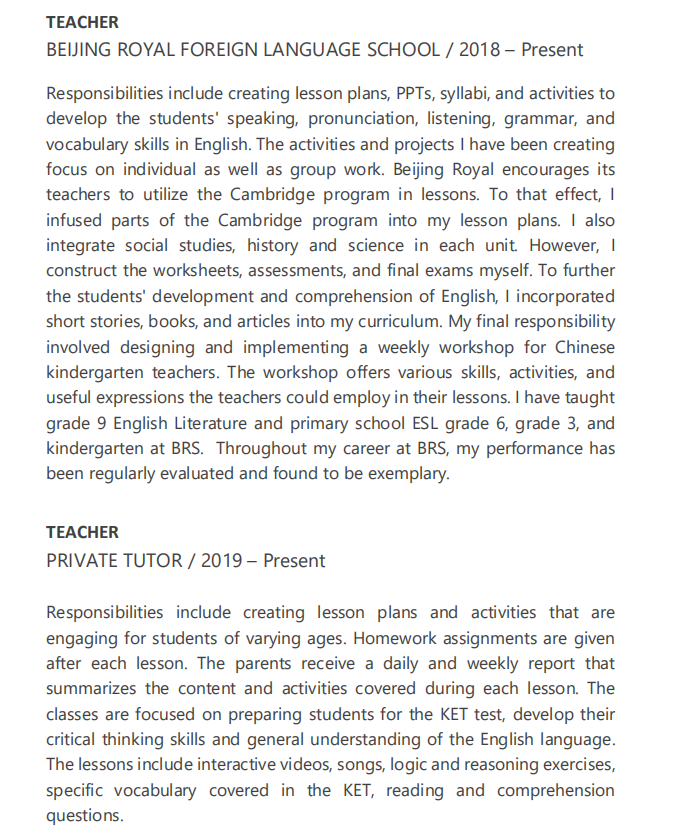國(guó)籍: 澳大利亞 求職意向: 教師