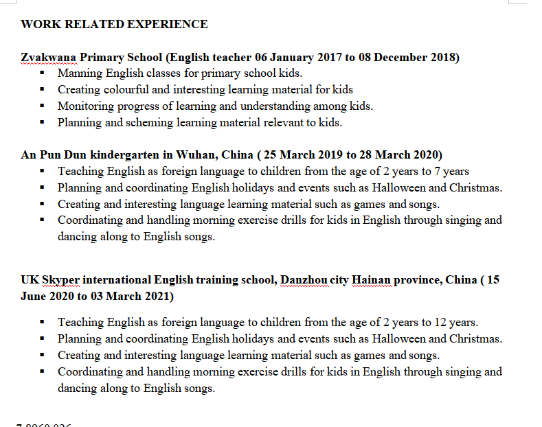 津巴布韋 自理工作簽,數(shù)學本科, tefl, 有小學和幼兒園+培訓班經(jīng)驗 行政職位到6月, 海南的簽證, 協(xié)商薪資 |