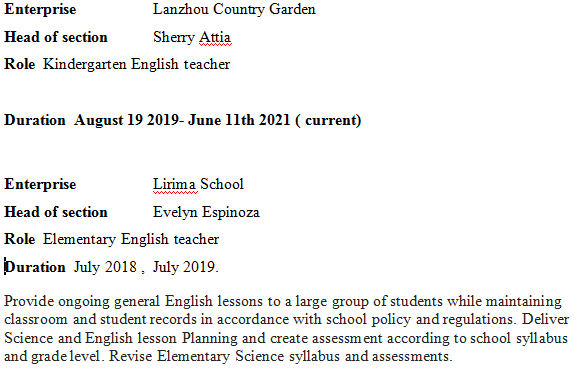 國(guó)籍: 摩洛哥 求職意向: 教師