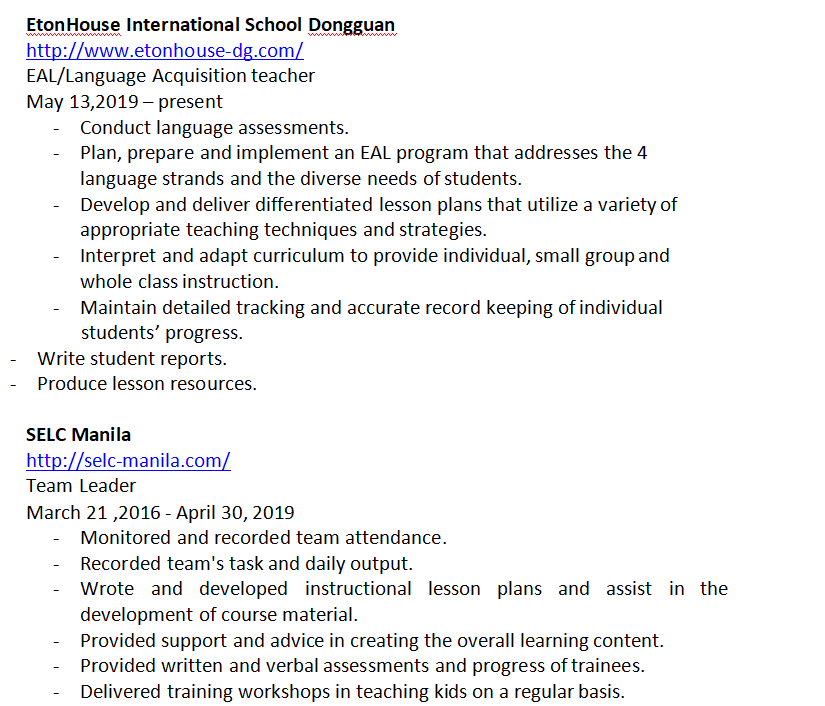 菲律賓 在東莞, 小學(xué)教育本科 17年經(jīng)驗(yàn), 轉(zhuǎn)聘 教師-6月低。求職廣東職位, 薪資協(xié)商。 |