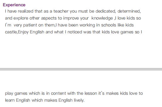自我介紹,介紹國(guó)籍,教學(xué)經(jīng)驗(yàn),愛(ài)好,喜歡孩子