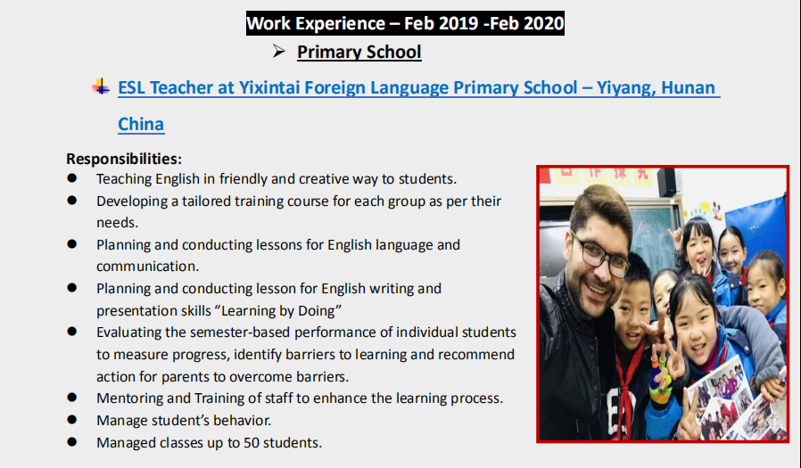 國(guó)籍: 摩洛哥 求職意向: 教師